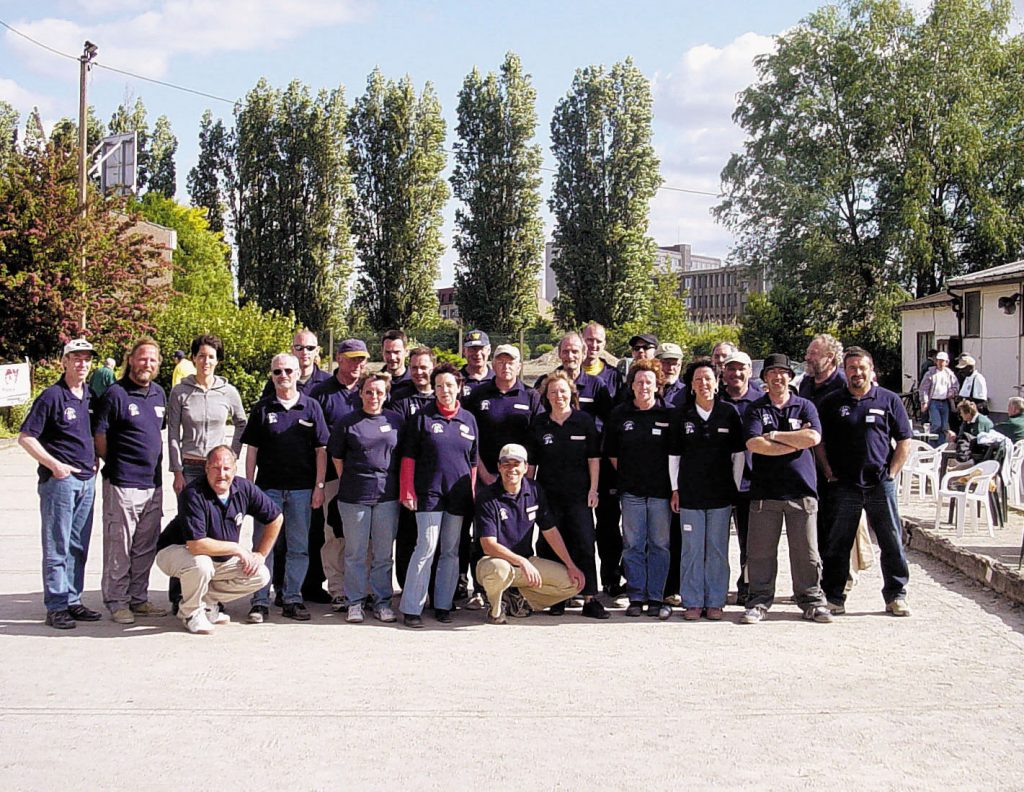Unsere erste Teilnahme bei dem internationalen Turnier mit jeweils einer Mannschaft aus Belgien, Frankreich, Holland, England und die Boule-Freunde Wiesloch für Deutschland. Jede Mannschaft bestand aus 8 Tripletten, also 24 Spielern: